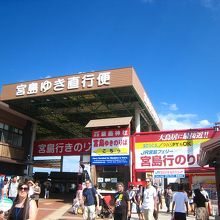 宮島口駅を出て真っすぐ歩くいて行くと、2ヶ所のフェリー乗り場があります。