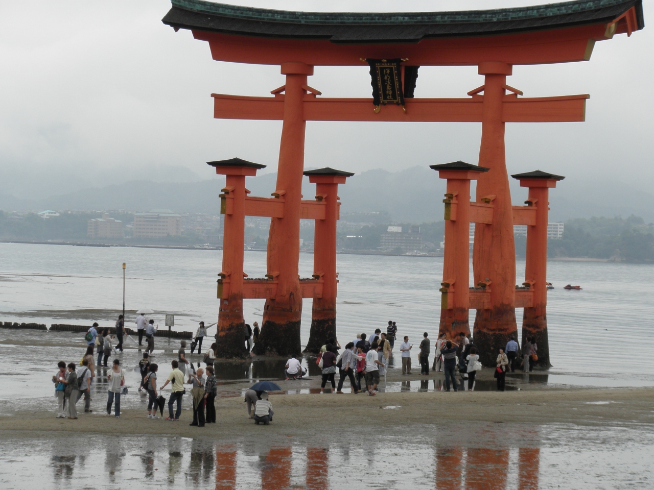 私達がついた時は引き潮で、ちょうど鳥居の下を歩く事ができ、新鮮でした