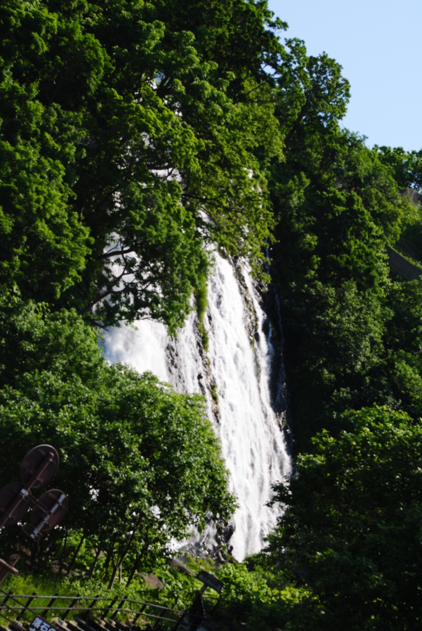 この水は国道沿いのオホーツク海にそのまま流れるので、海に流れ着く水の量も半端なく、こんな滝は初めて見ました。
