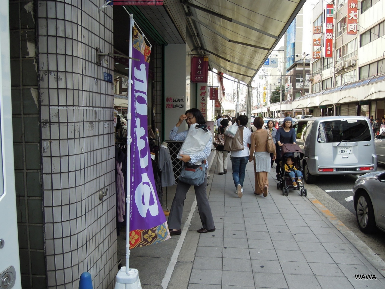 難波や千日前から続く長いアーケード商店街である心斎橋商店街の北端が「せんば心斎橋商店街」でした。周辺には繊維問屋や繊維メーカーのビルが建ち並び、中には小売を扱う店も多く、流行の最先端とはいかないでしょうが格安衣類が手に入り易い地域であることは間違いありません。