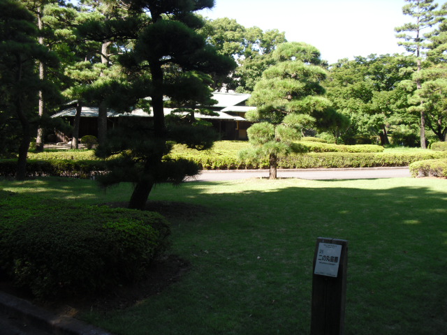 東京駅から歩いて15分ほどで大手門に着き、そこから皇居東御苑に入りました。本丸跡、天守台と回り、二の丸庭園に着きました。ここは江戸城二の丸のあったところです。日本庭園がありましたが、まわりは雑木林でした。昭和天皇の発意で、東京近郊で失われていく雑木林を残すために造られたそうです。