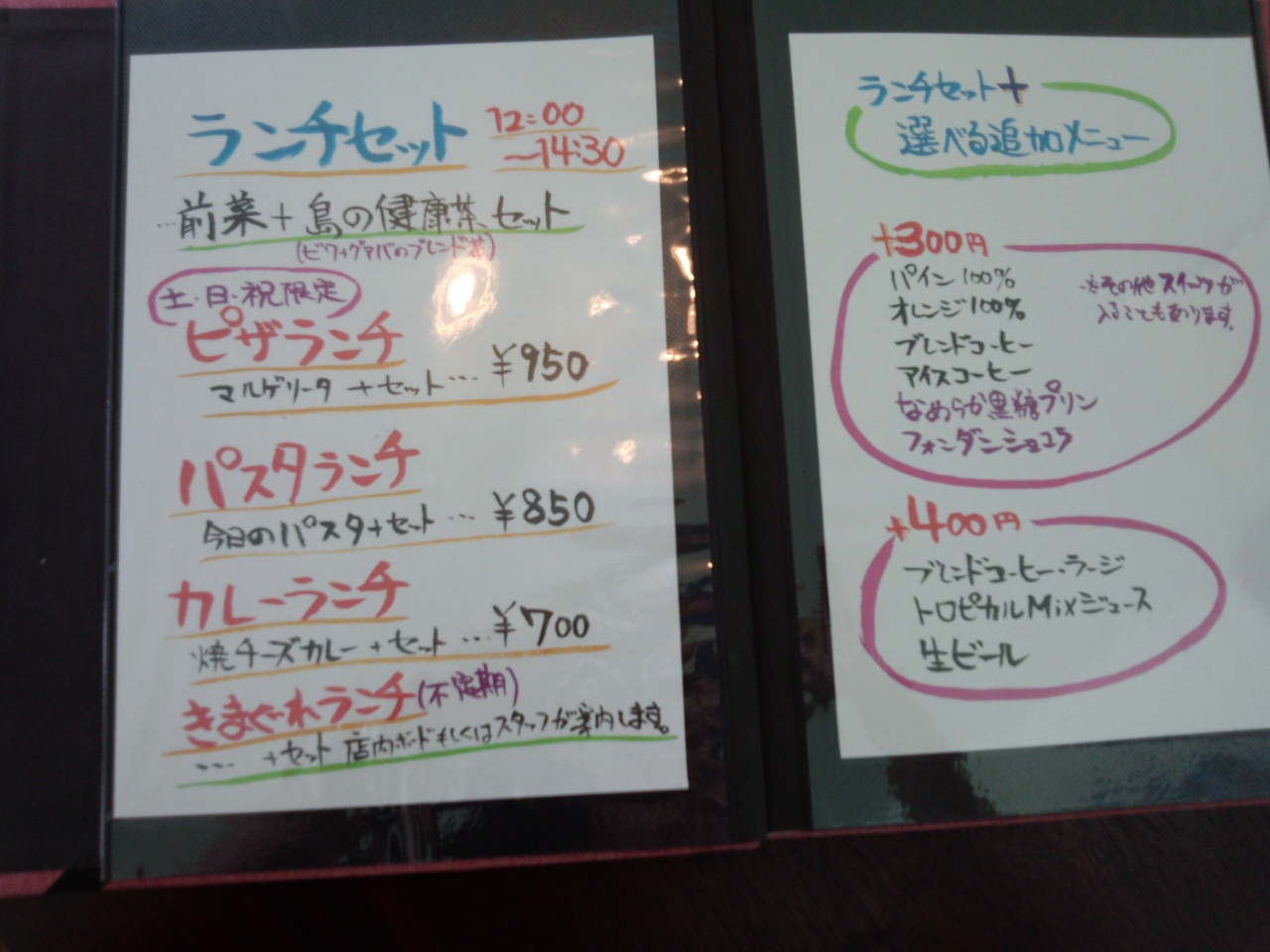 ランチセットに前菜+島の健康茶(ビワ+ク゜ァバのブレンド)が付いています。