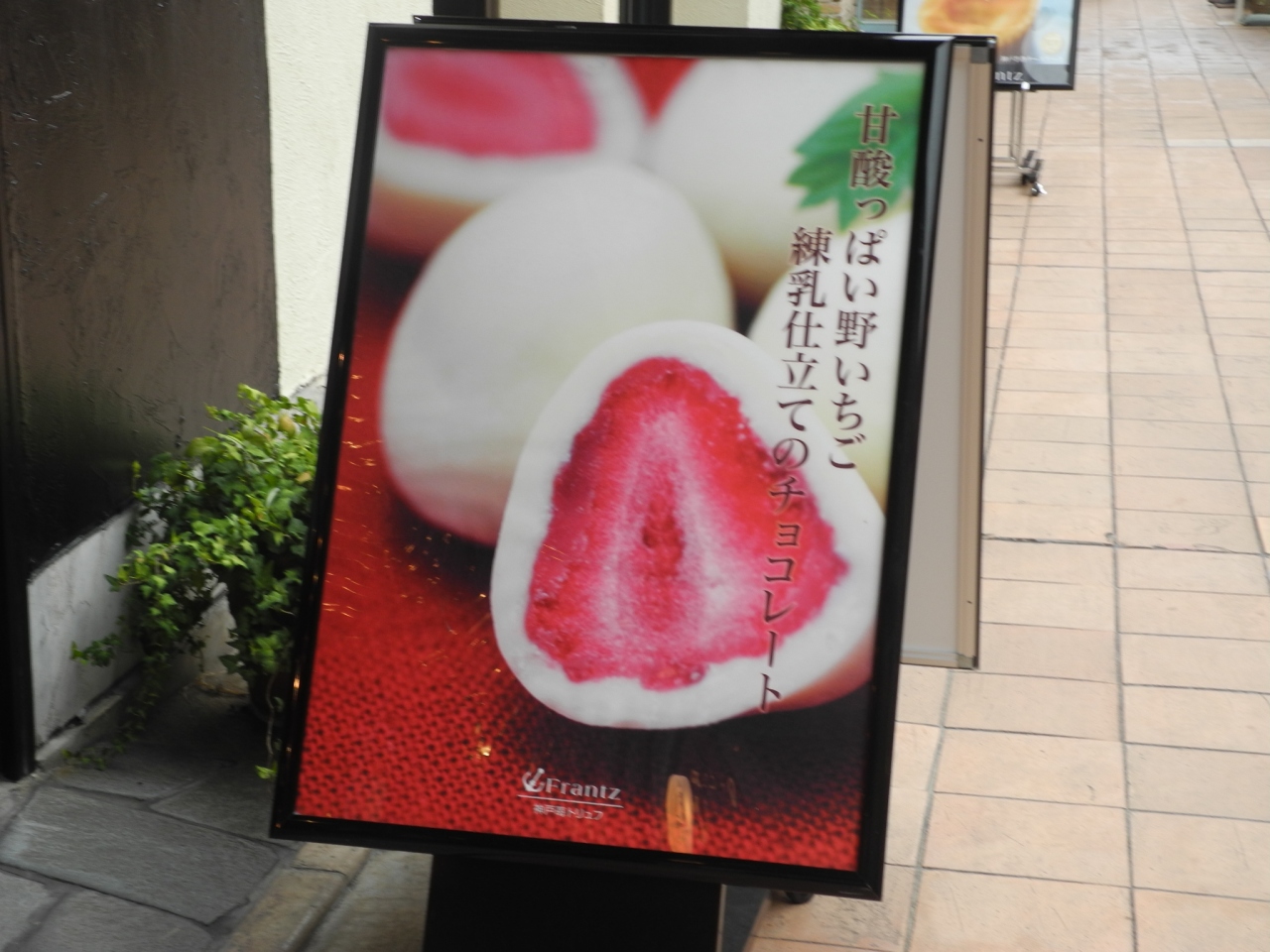 神戸フランツ (モザイク店) (コウベフランツ (モザイクテン))は、ハーバーランドモザイク2Fに有ります。調度、真ん中ぐらいに位置していてとても目立ちますのですぐにわかります。ここでは、宣伝広告に誘われて買ってしまうのが、この神戸いちごトリュフがおすすめです。