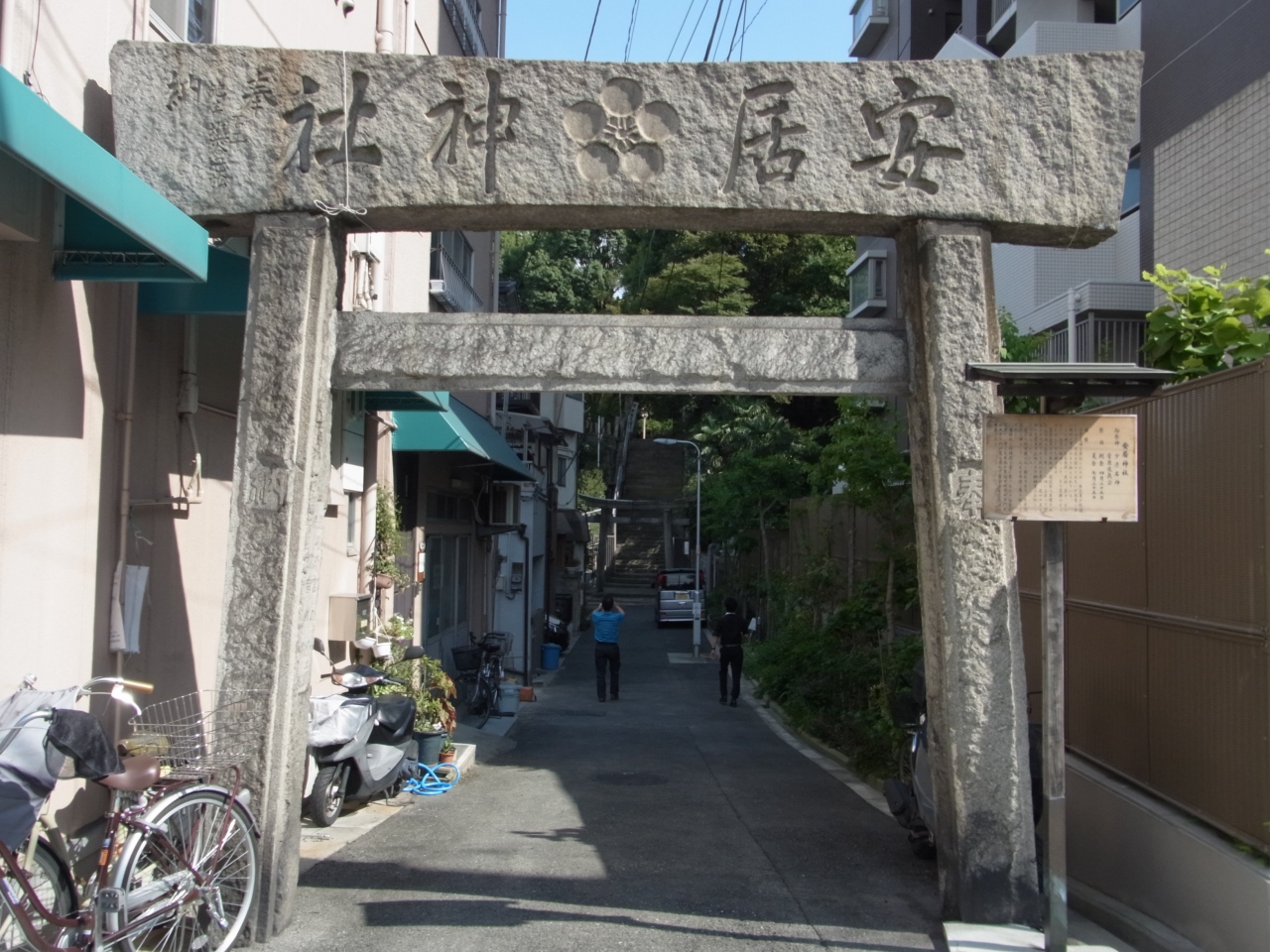 大阪四天王寺の近くに隠れた明神社発見です。創建の年代は詳らかでないが、聖徳太子が四天王寺を建てた頃(約1400年前)であろうと伝わる。祭神は少彦名神と菅原道真を祀る。境内は天神森あるいは安井森とも云われたそうです。境内は真田幸村が大坂夏の陣で戦死した地と伝えられ、石碑がありました。お参りして、感動しました。