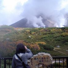 紅葉見物のためロープウェーで上がり、せっかくなので一周一時間ほどという遊歩道を歩いてみました。 夫婦2人とも足が悪く、少々不安がありましたが、挑戦して大正解でした。紅葉しはじめた高山植物、大小の湖沼、湿原、迫力満点の噴気孔等々、北海道の天辺の大自然を満喫しました。
