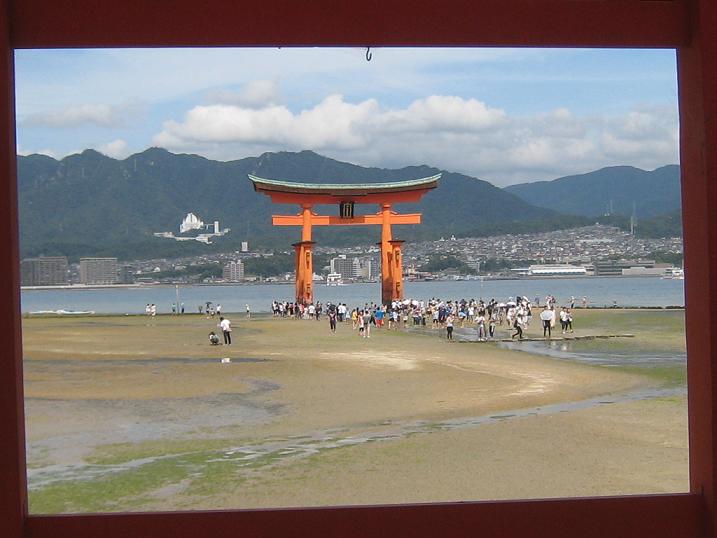 前日の夕方、満潮だったので、海に浮かぶ神社とそうでない神社が見れ