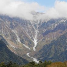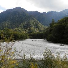 標高1500メートルの河童橋から望む、穂高連峰や焼岳など名山の数々。