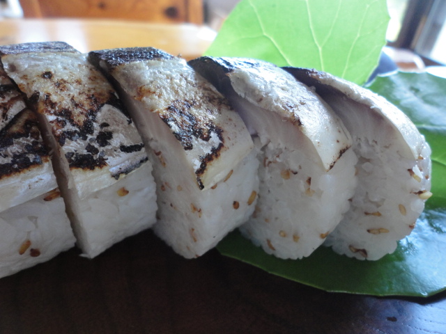 持ち帰り用の鯖鮨は、お願いすると、その場で切って