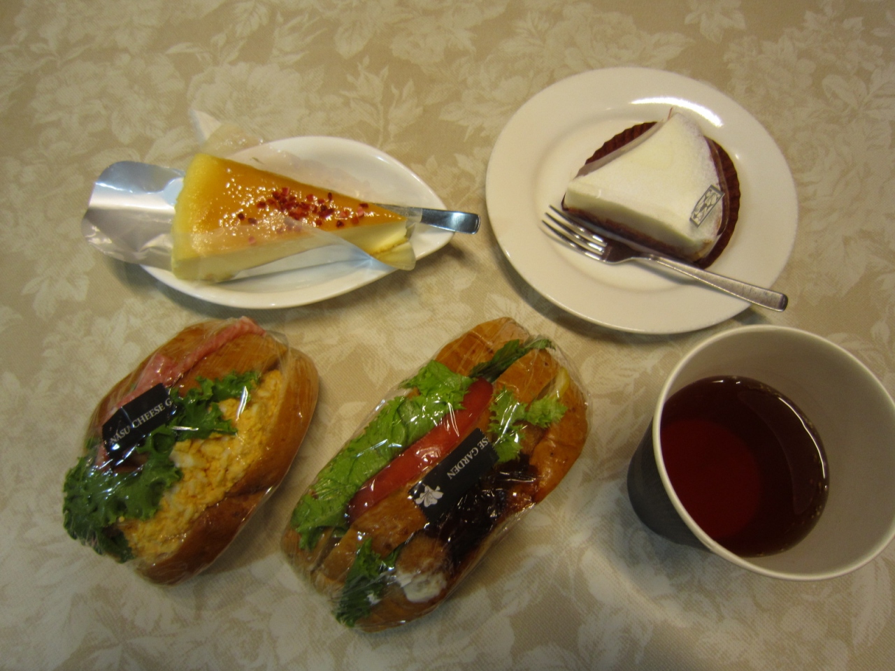 奥のお店でサンドイッチとチーズケーキのお昼を食べました。