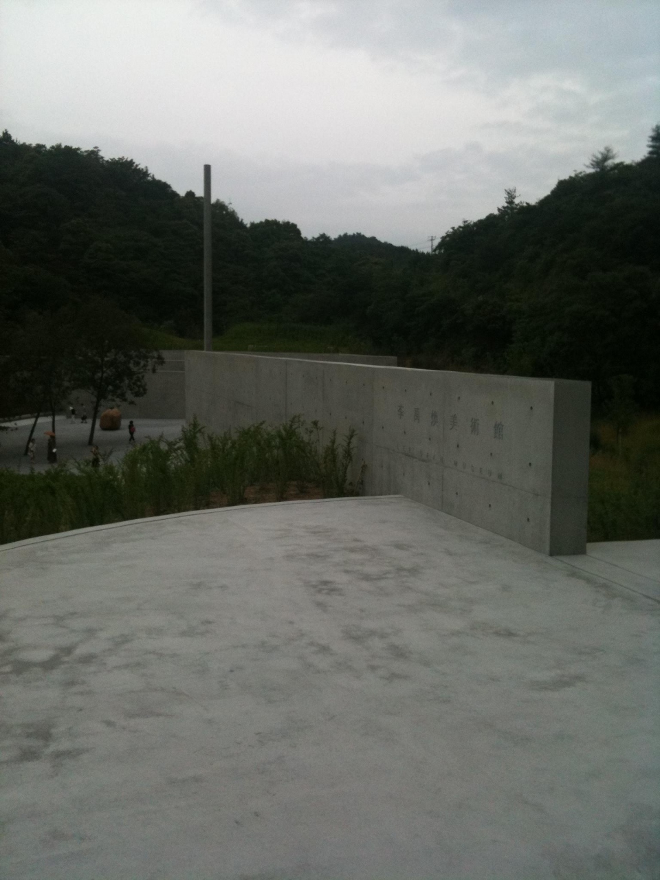 地中美術館からちょっと離れた場所に2010年に出来ました。地中美術館に対して、「半地下」といった空間です。エントランスから不思議な光景が愉しめます。長い柱が点に伸びていたり、コンクリートの塀に囲まれた入り口から地中へもぐっていったり・・・