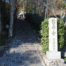 阪急松尾駅を下車し、住宅街を抜けること15分で鈴虫寺の石の看板が見えてきます。