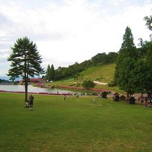 パターゴルフを終え、少し離れた池のある方へ歩いて行くと「真夏の雪祭り」はすでに終了していました。敷地が広く、大人も子供ものんびり過ごせる場所です。