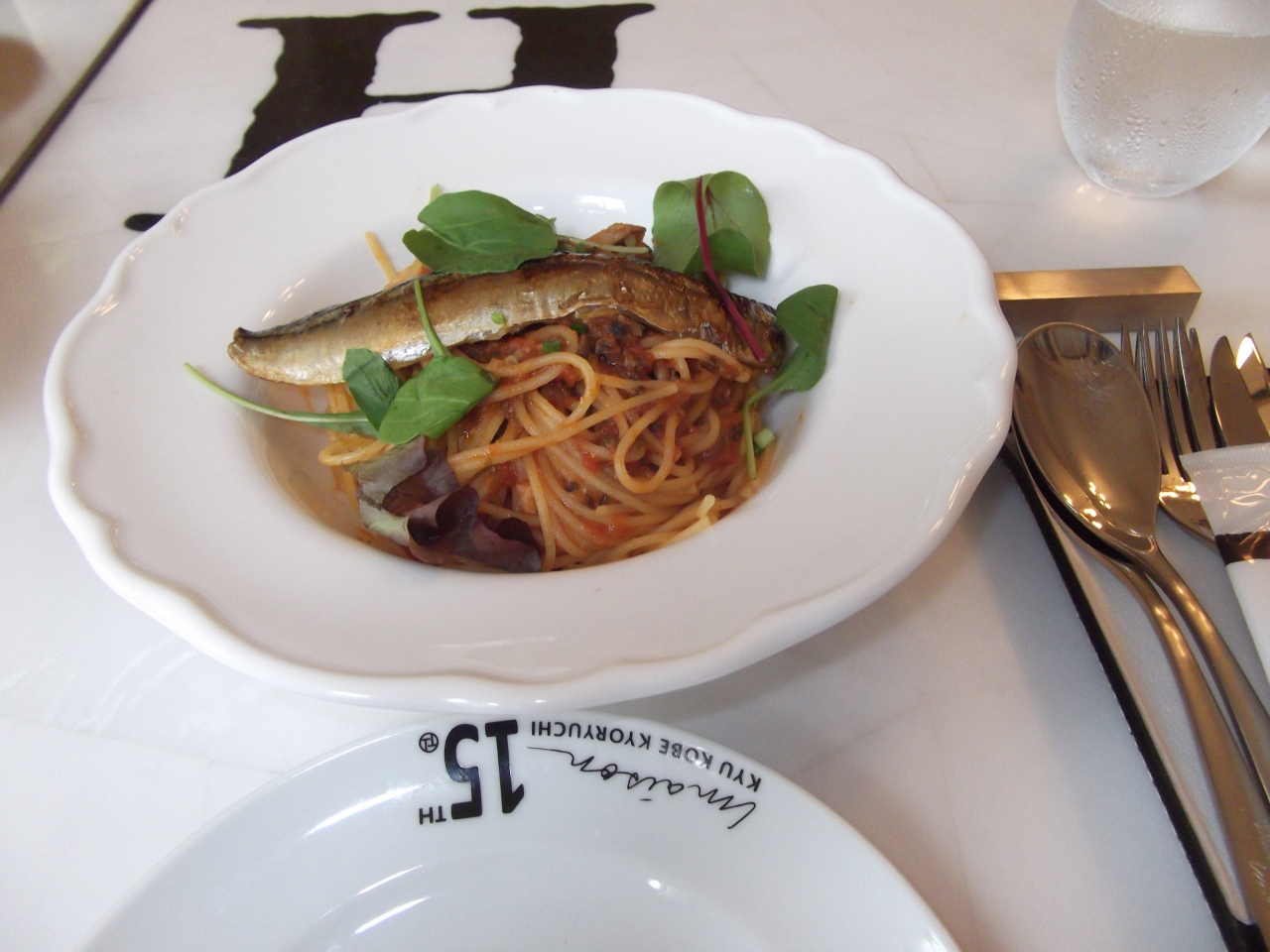 本日の限定ランチは秋刀魚とキノコのトマトソースパスタ、秋刀魚がど~んとのっかってました。