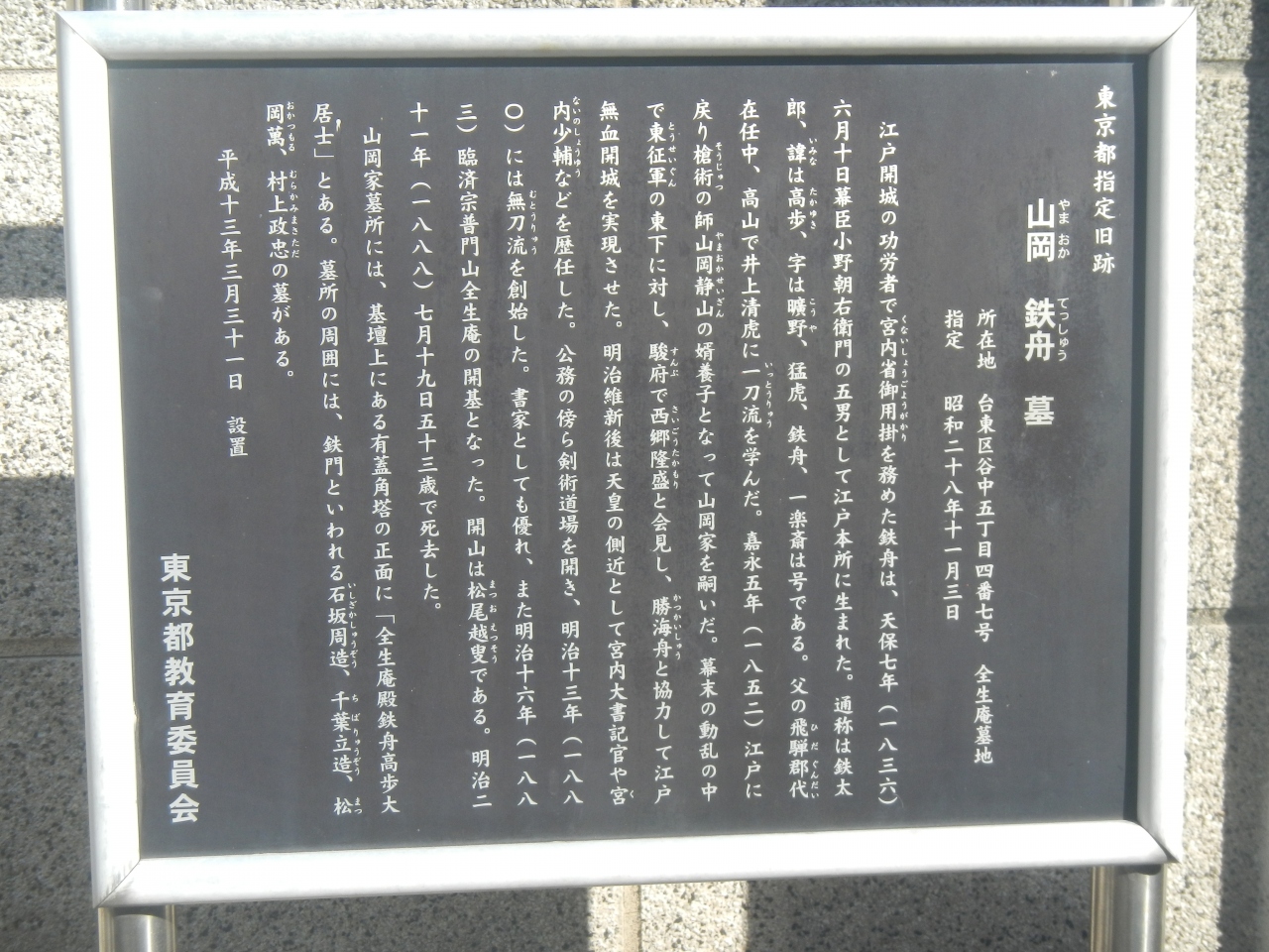 この寺は明治16年に山岡鉄舟により創建された。そのため山岡鉄舟の墓がある。また落語家の三遊亭円朝の墓があることでも知られている。
