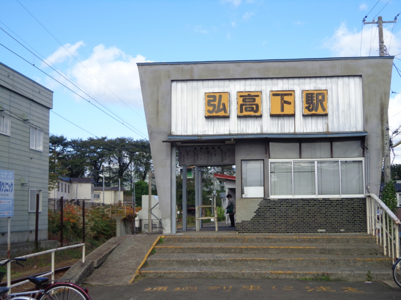 閑静な住宅街の中の駅で、弘前高校の下なのでの駅名ですかね?