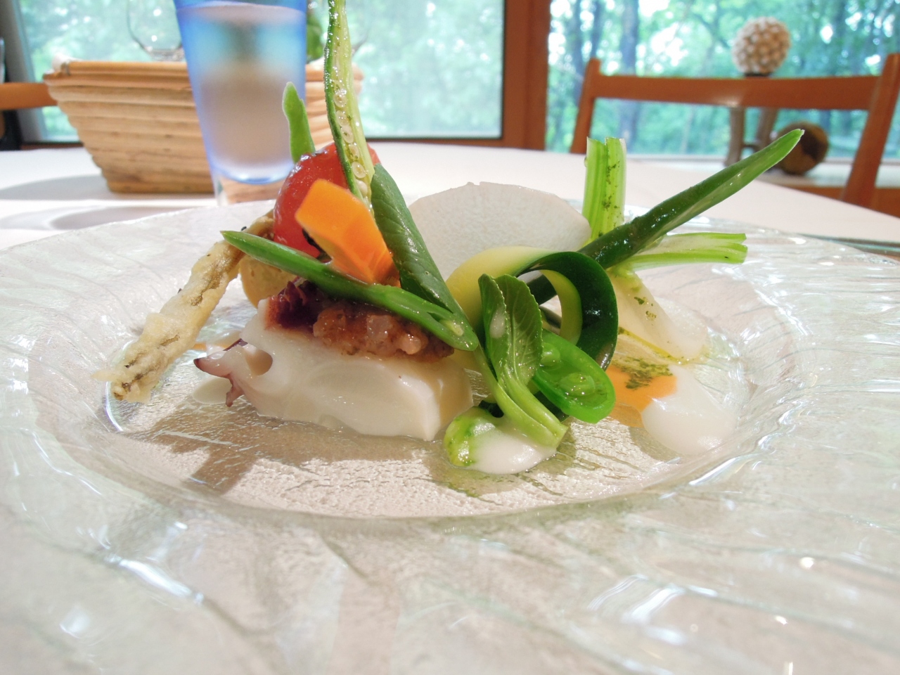 G8のファーストレディーたちも訪問したというレストラン。ランチで利用しました。中の厨房もガラス越しにみえて、オープンで開放的なレストランです。この近くに温泉施設もあるので、レストランと温泉と楽しむことができます。