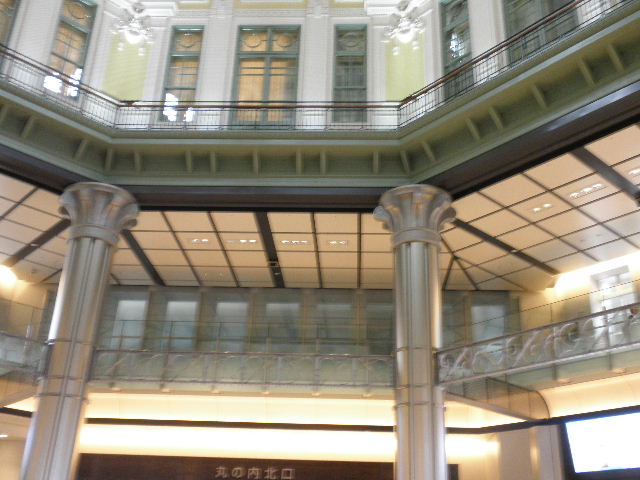戦争で焼けたドームや三階部分が修復されて、蘇りました。全部を見るには、向かいの丸ビルや新丸ビルからも見えます。東京ステーションホテルには、ドーム側の入り口からも入れます。ドーム内側2階部分には、テラスのように空中をあるける場所があり、天井が身近に見えましたよ。