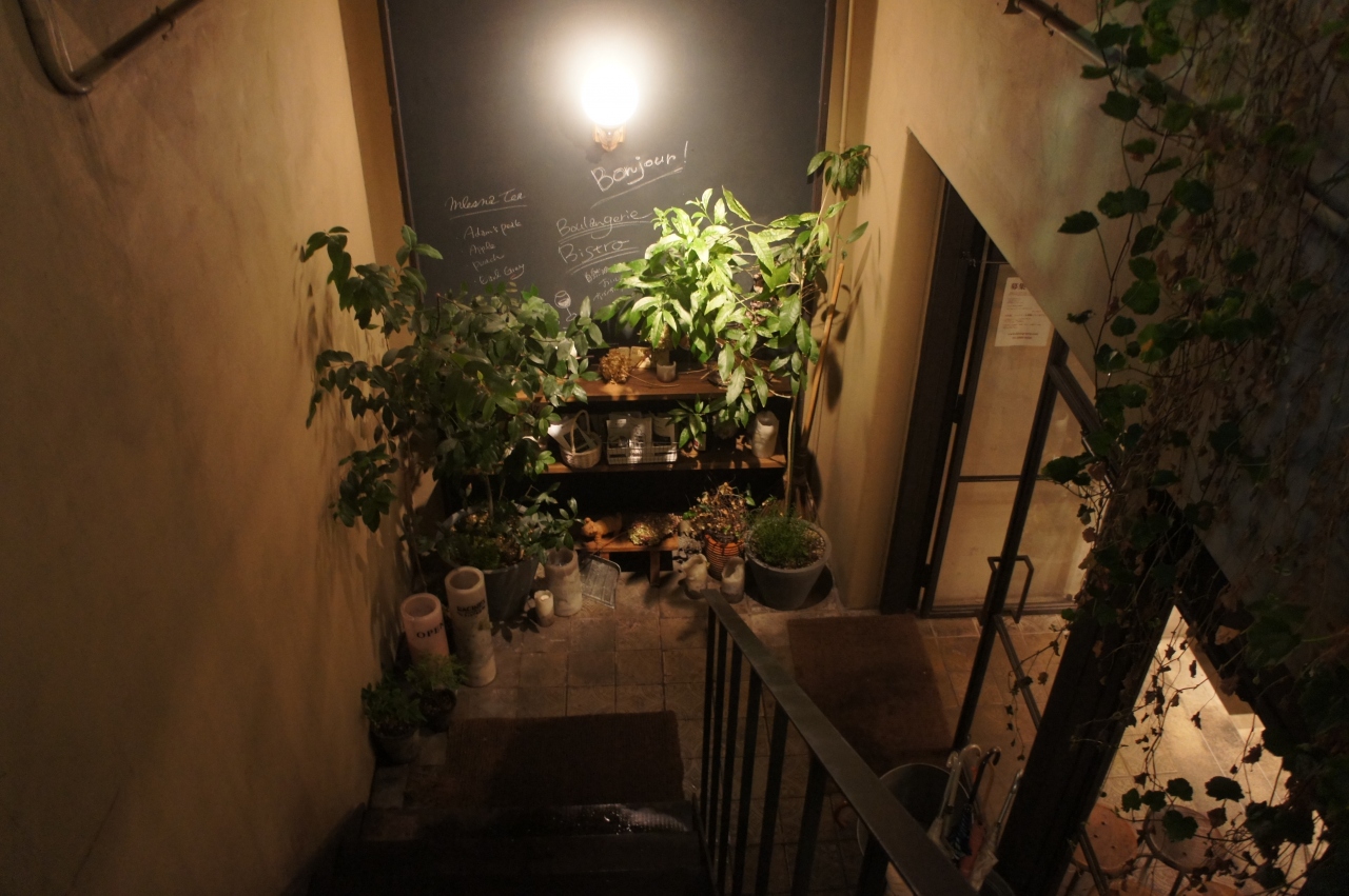 ここをパン屋と思って探すとなかなか見つかりません。ビルの地下に入っている立地もさることながら、入り口には、おしゃれなレストランのメニューボードが立てられていて、レストランそのものです。