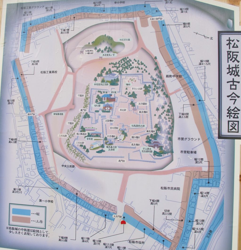 松坂城(まつさかじょう)は、三重県松阪市殿町にあり、私はJR紀勢本線の松坂駅から西方向に歩いて行って15分ほどで到着することが出来ました。天守台、本丸、二の丸、石垣など多数が残っています。天守台から伊勢湾を望む景色が良かったです。