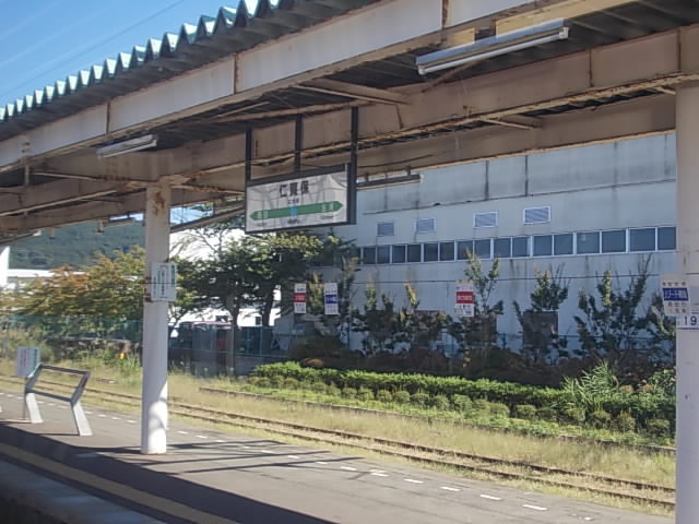 仁賀保といえば、やはりこの字を連想することになりますが、実は最近の町村合併によりこの辺りはにかほ市になりました。確かに平仮名表記はわかりやすいとは思うのですが、やはりこの馴染みの漢字の方がしっくりくるイメージがありますね。尚、風景としてはこの駅付近から海上には男鹿半島が島のように望むことができるようになります