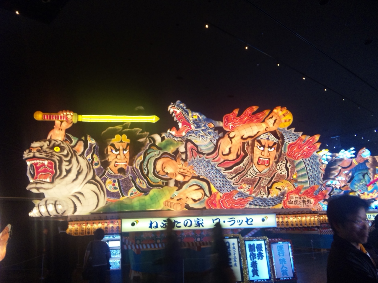 ただ10年以上前に訪れた、郊外にあるねぶたの里と比べると山車の数は多いものの、窮屈に感じました、ねぶたの里では同行者が祭り用の大太鼓を無断で叩き出して冷や汗をかいたのも懐かしい思い出です。(その人は地元では太鼓の名手でしたが撥の長さと細さが違いすぎて打ってみたかったと釈明しました。打ち終わった後はその撥さばきのお陰で館内のお客や係員からも拍手喝采だったので助かりましたが)