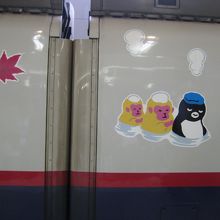 今回は東京駅から乗りました。秋のバージョンの車体がディスプレイされています。