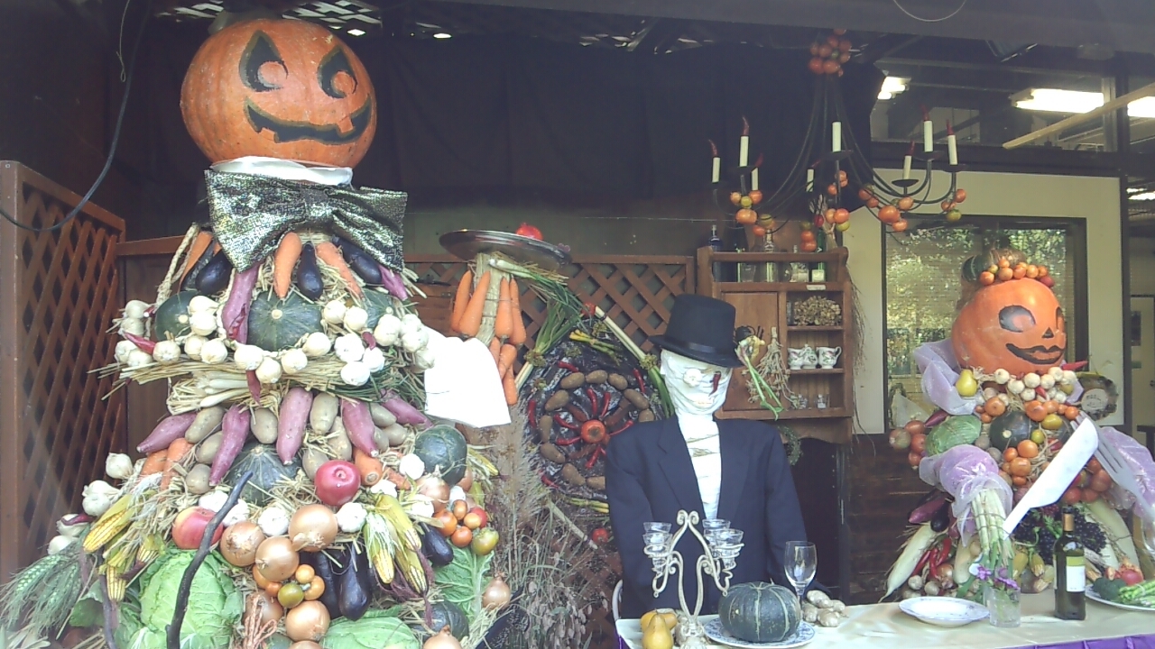 10月最後の週だとハロウィンのイベントやるみたいだけど、友達との日付が合わず一週間早めに行きました。ハロウィンの飾りが野菜で創られていて、よ~く見るとちょっと顔が怖かった(^^)