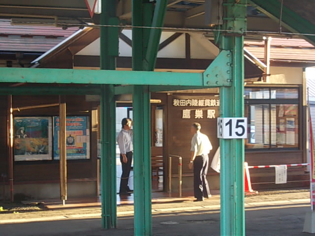 この駅は、東北でも屈指の長距離を誇る第三セクターである秋田内陸縦貫鉄道との接続駅として知られていますが、町自体は世界一の大太鼓の里としても有名で、それを示す太鼓のレプリカが駅ホームに威風堂々と飾られていますので、こちらも是非御覧下さい。