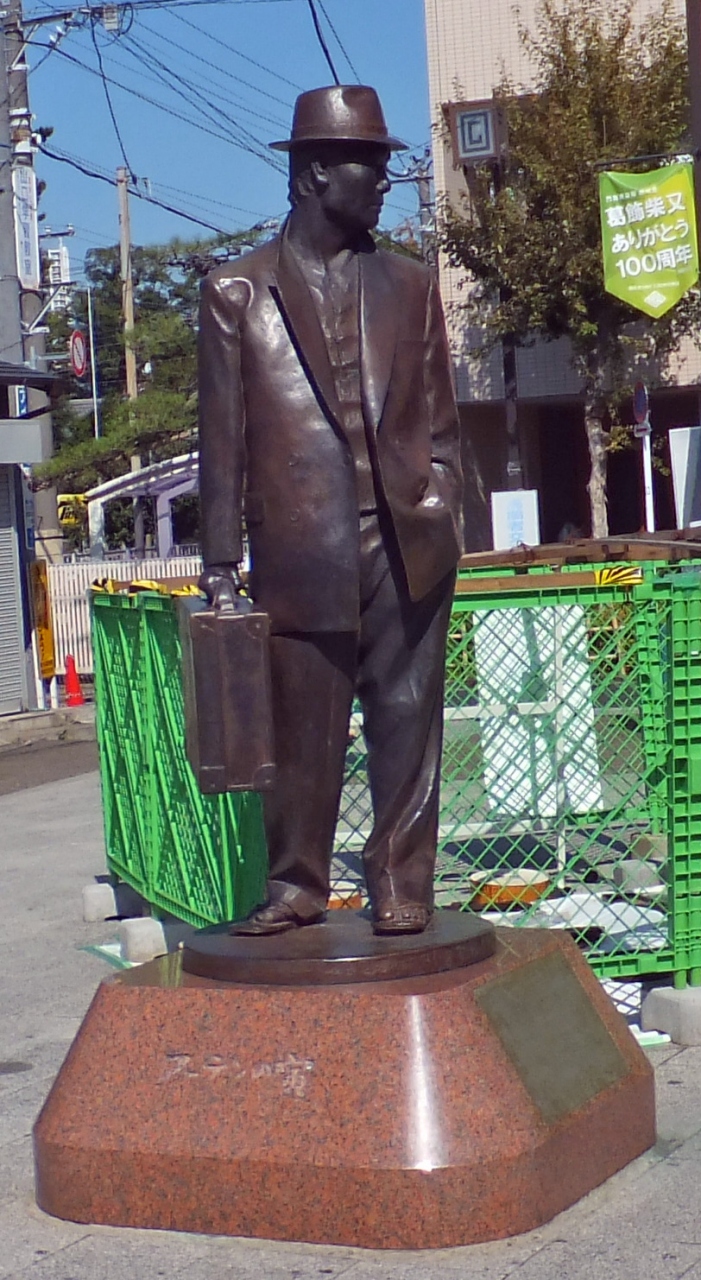改札口を出ると、正面に、車寅次郎の銅像が見えてくる。