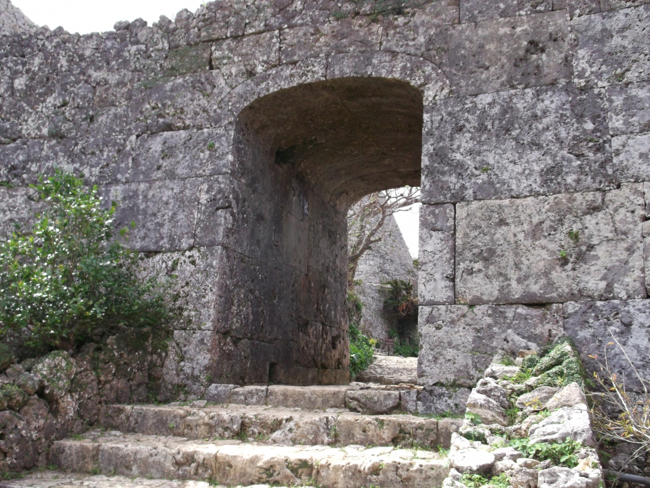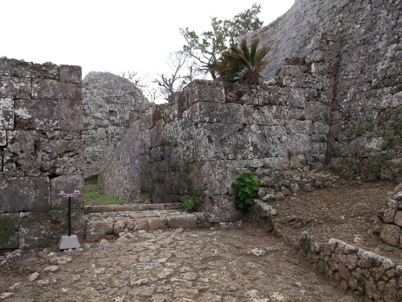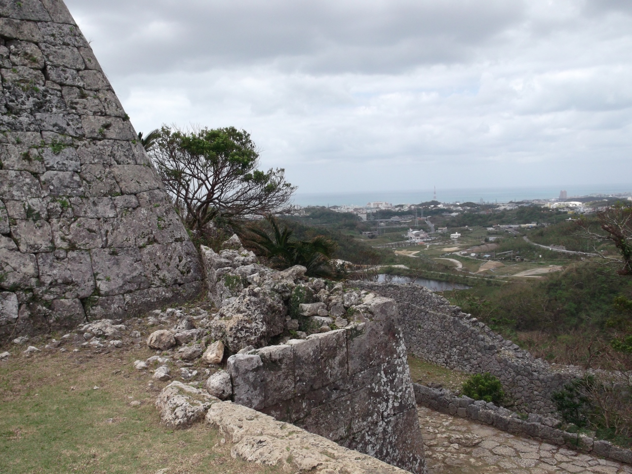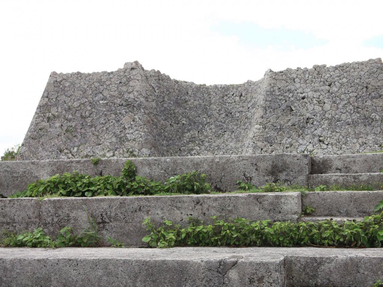 連郭式の山城で六っの郭で構成され、自然の岩石と琉球石灰岩で