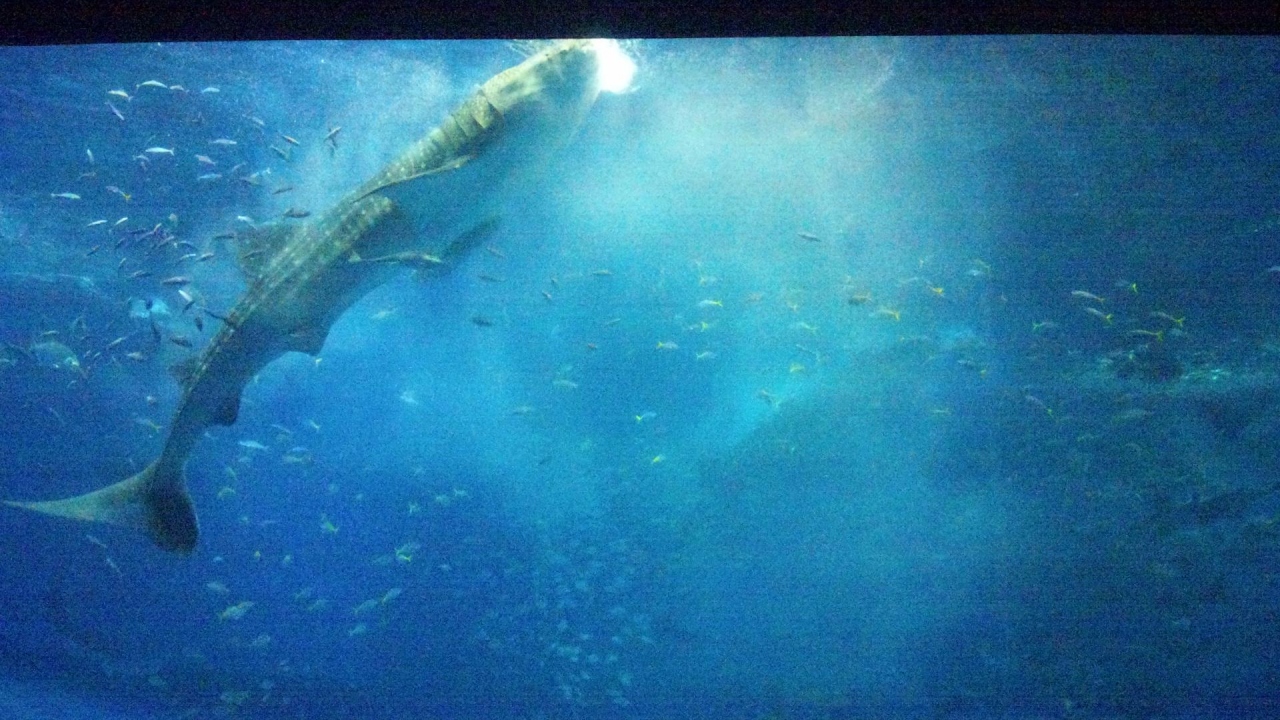 テレビでよく見る景色だった。やはり生でみるジンベイザメは迫力がすごかった。4時から安くなるチケットを購入した。4時からおきちゃん劇場だったので慌てていたが、おきちゃん劇場は園外でやっていて無料で見れるという事だったので、先におきちゃん劇場を見てからジンベイザメの餌付けの時間に合わせて水族館内を見てまわった。とても楽しかった。