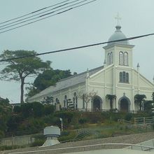 大江天主堂は、フランス人のガルニエ神父が私財を投じ て1933年に建てたもの。天草の青い空に映えるロマネスク様式の白い建物が威光を放っています。