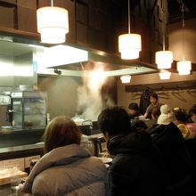 オープンキッチン。店員さんは無駄話せずにシャキシャキ動いていて