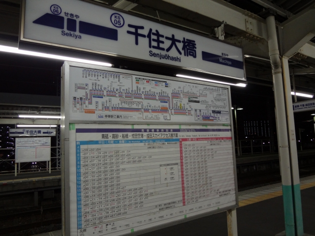 東京都足立区にある京成本線の駅で、各駅と快速が停車します。また、各駅停車はこの駅で特急の通過待ち合わせを行います。周囲は下町の光景が広がっています。駅名は近くの隅田川を跨ぐ橋から。JRの北千住駅へは歩いて15~20分程度です。