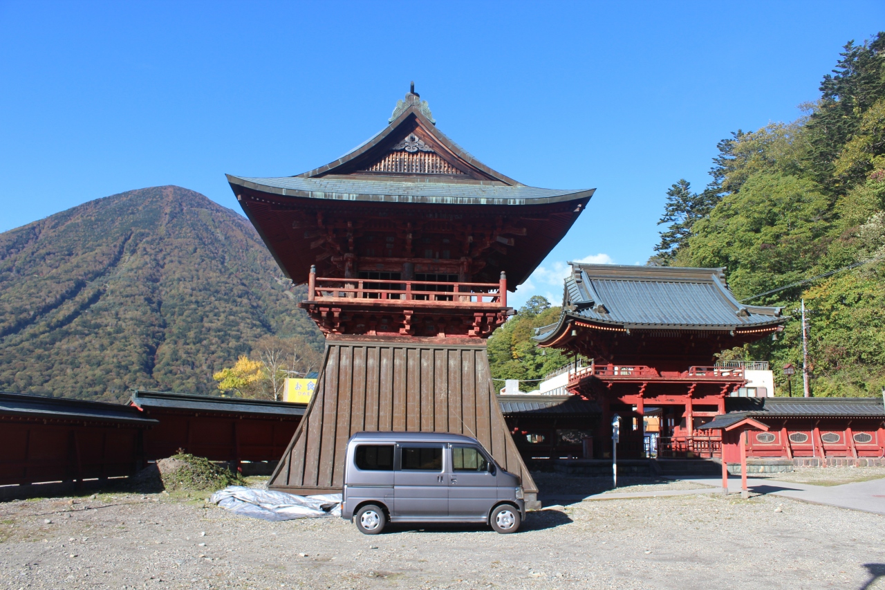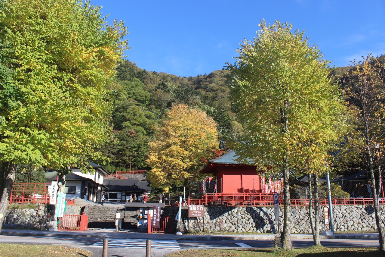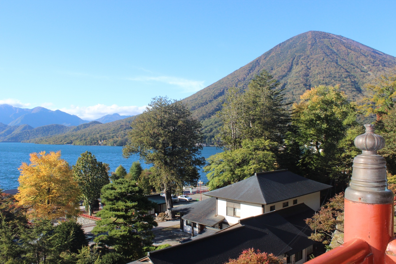 寺の最上階からの景色は みごとです。中禅寺湖が一望できます。