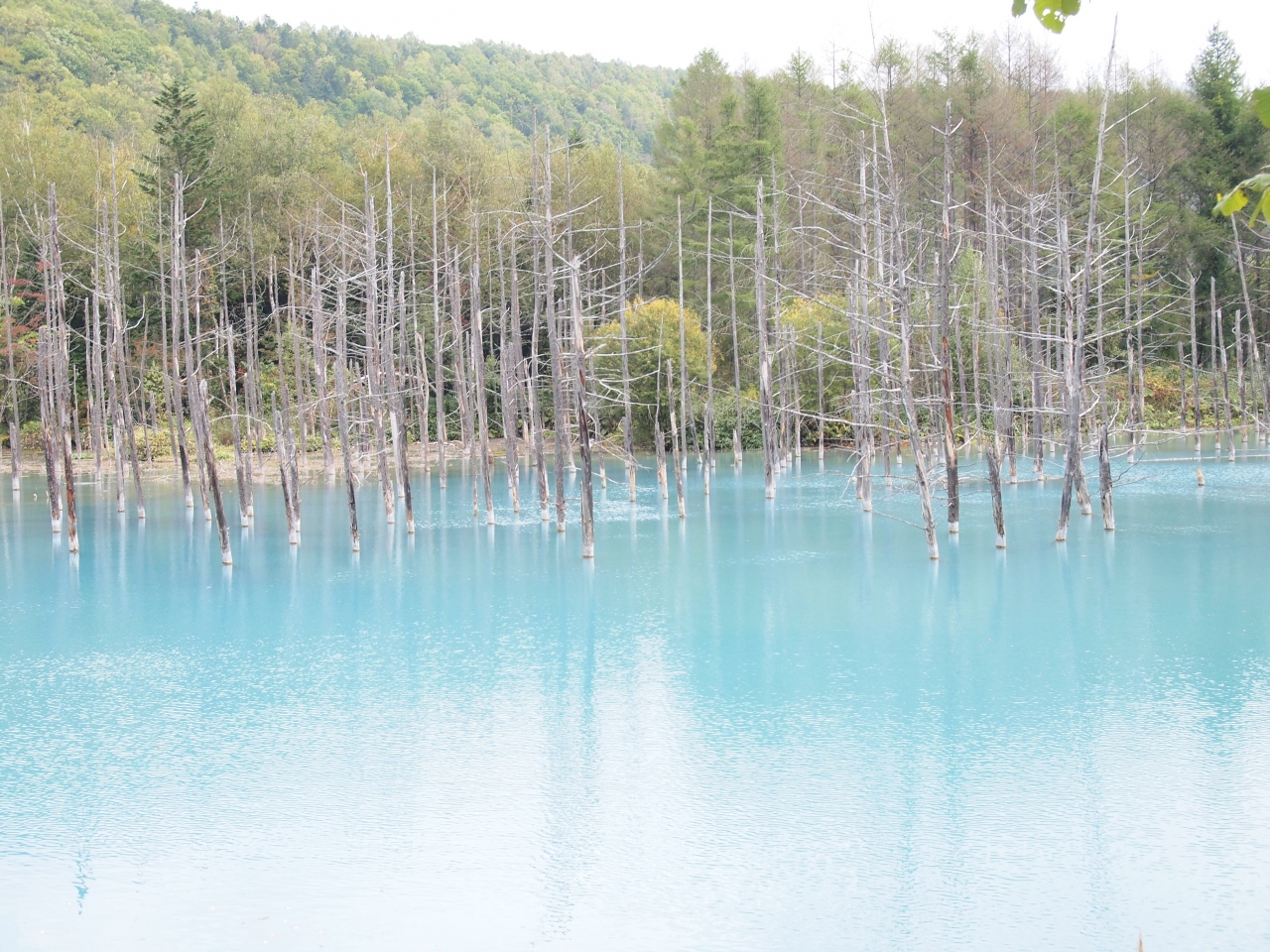 旭川方面から車で向かうと、「小麦畑と青い池」という道の駅が見えて、あわてて入ったら本物の青い池はもっと先に行ったところにありました(笑 直前まで行かないと看板が見えないのですが、近付けば左手に分かりやすい看板が出ているので、見逃す心配はないと思います。