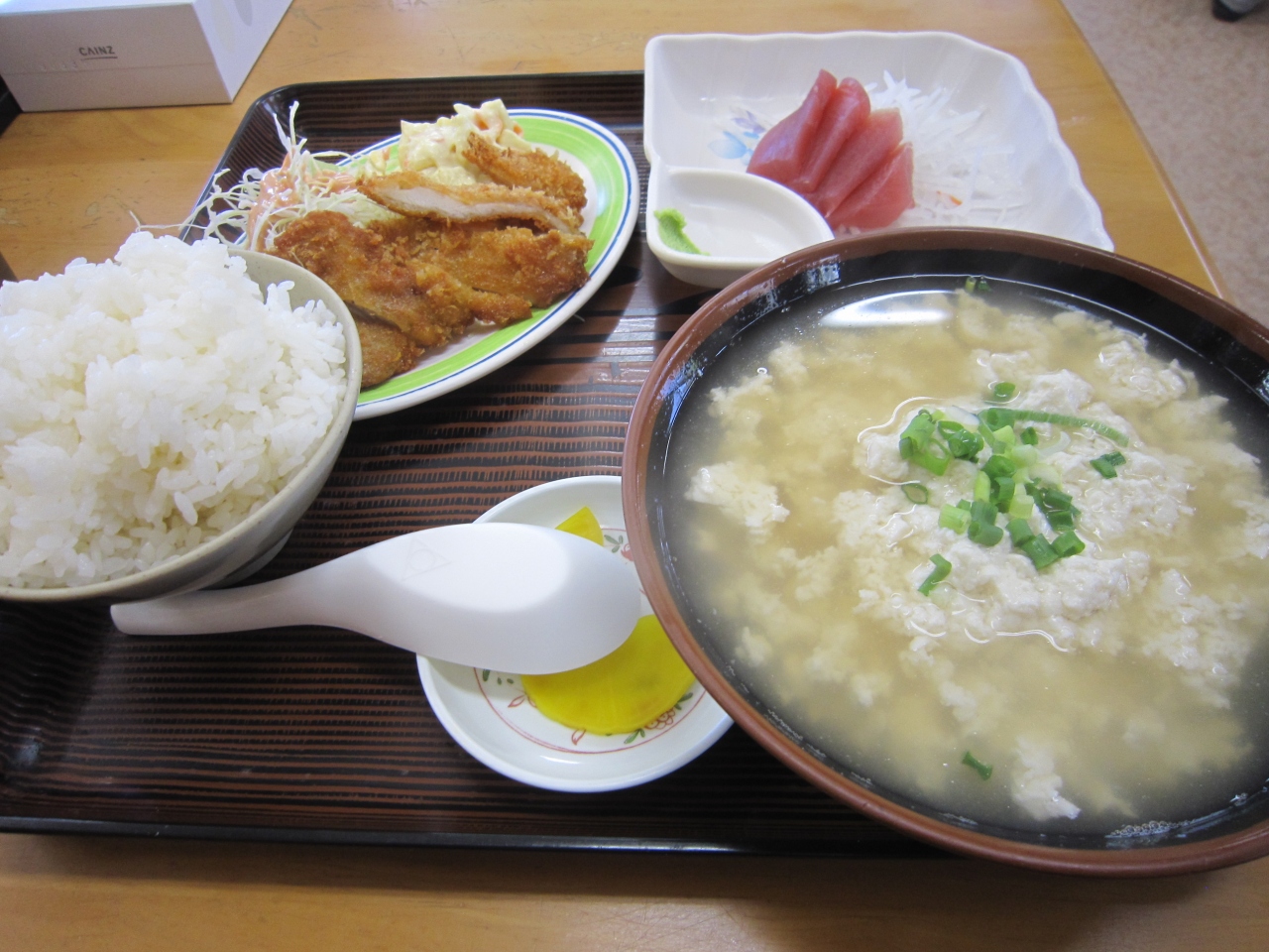 ゆし豆腐と刺身とチキンカツとマカロニで570円!