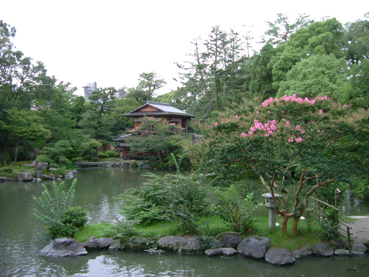 拾翠亭は、京都御苑の一番南側。御所から南に続く広い道路の終点にあります。ここは、五摂家のひとつであった九條家にあった建物で、現存する唯一の建物らしいのですが、そもそも、京都御苑の中は、こうした公家の屋敷があった場所。当時の様子が窺われる場所と言う意味ではかなり貴重です。この建物は、江戸後期に建てられたもの。数寄屋風書院造りで、茶会等のための離れ。前面に広がる池は九條池。肩肘を張らない軽快な遊び心が感じられます。なお、拾翠亭の利用は、京都御苑事務所に申し込めば、できるようです。