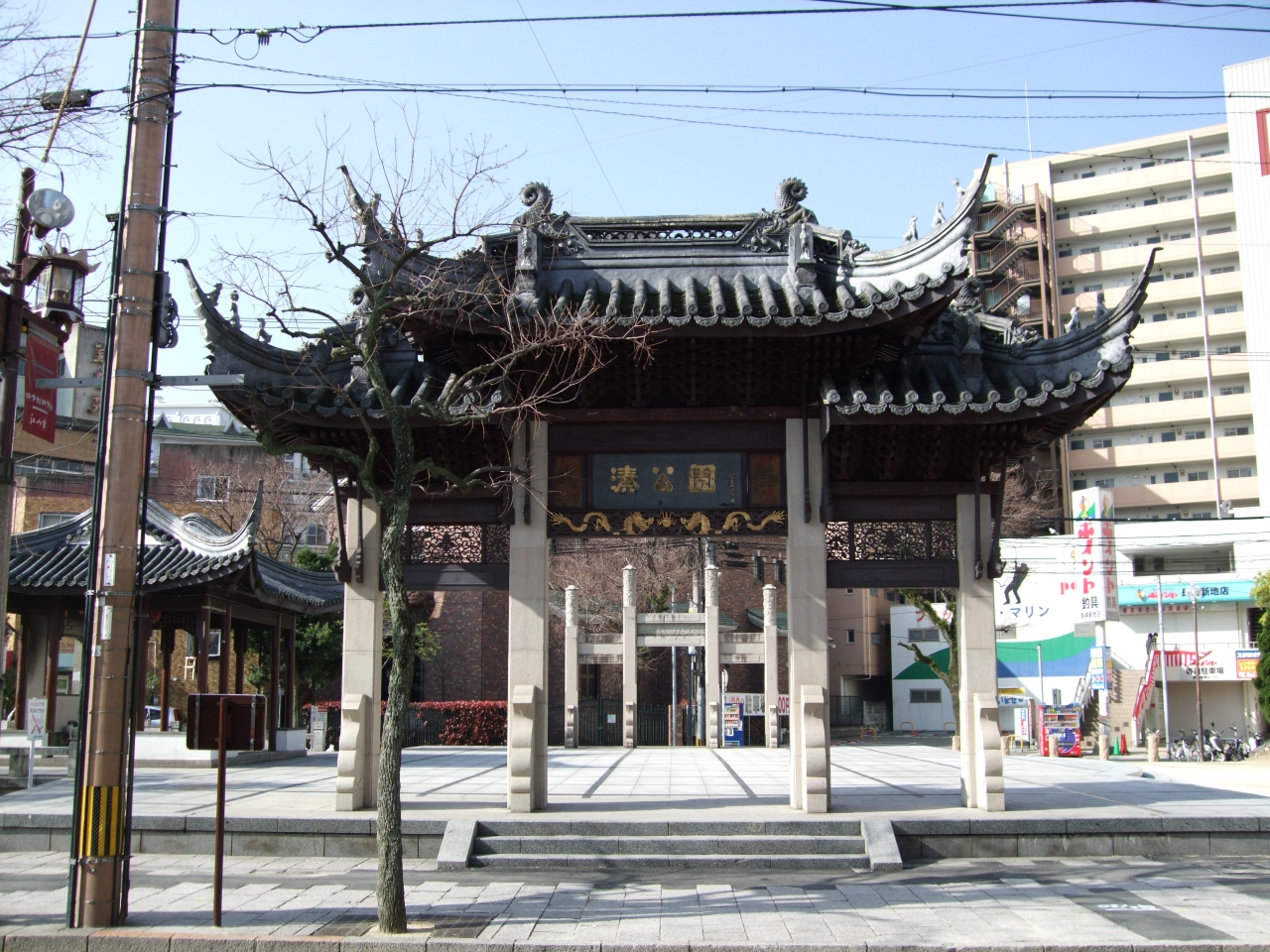 湊公園は中華街を抜けて、唐人屋敷に向かう途中にあります。この門が目印。今はひっそりとしていまして特に特徴はないのですが、ランタンフェスティバルの時はここがメイン会場になります。赤いランタンの中華街通りを抜けて寒い中ここまで大変な雑踏の中を歩いてきます。ところ狭しと飾り付けられたランタンは本当に見事です。ただし、普段は閑散としていまして、まばらに日向ぼっこをしている人がいるくらい。門だけがりっぱで、目立っています。なお、唐人町への入り口もこのすぐそば。新地のバス停も近くです。