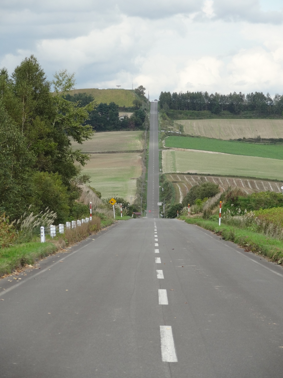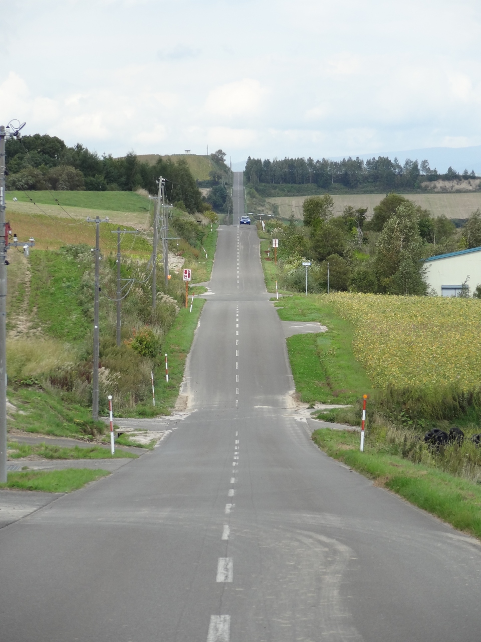 これは圧巻です。ずっとずっと遠くまでアップダウンの路がまっすぐ限りなく続いてます。こんな道は北海道ならでわです。富良野側から来た坂の一番上から道路の真ん中に立って写真撮影するのがお勧めです。(もちろん交通に気を付けて)