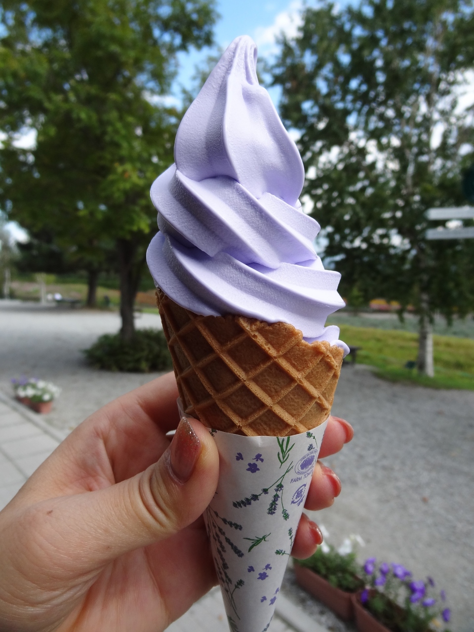 ここはラベンダーで有名ですが、私たちの行ったのは9月、もうすでにラベンダーの季節は終わってました。畑には花の終わったラベンダーが残ってましたが、この季節に咲く花がたくさん植わってて結構楽しめました。ここのラベンダーソフトクリームは美味しいです。