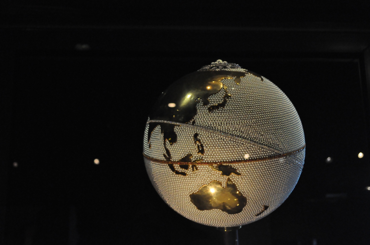 中の展示品はとてもゴージャスなたくさんの真珠でできた地球儀など