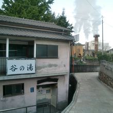 お湯の温度は熱く、蛇口の水で薄めてました。