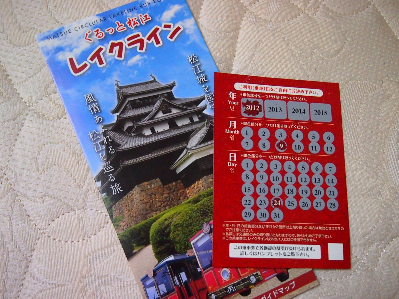 松江市内の観光スポットを余すところなくまわれる、バスです。 1日乗車券あり