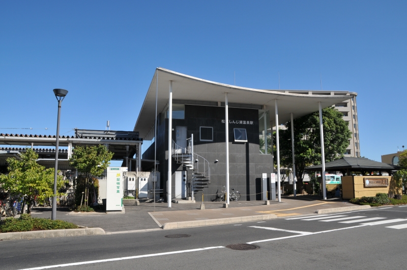 一畑電車の始発駅です。松江駅からはやや離れており、バスで10~15分ほどかかります。駅舎は新しく、売店や無料の足湯があり、待ち時間もいろいろ楽しむことができます。駅舎が新しいのでトイレが清潔でした。また、全線乗る場合この駅で一日乗車券を買うとお得です。