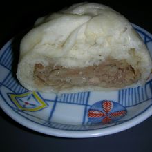 ずっしり重く食べ応えのある、ジューシーな肉まんは、何度食べても美味しい♪2個は食べれます!