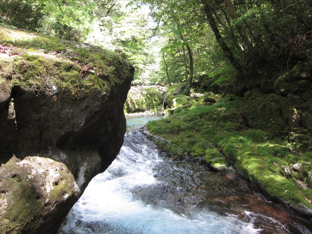 熊本市内からも車でならそんなに遠くない場所にありながら、緑と水の綺麗なのをまじかで感じることができます。私は初夏に訪問しましたが、秋も綺麗と思います。水辺に近づきこともできマイナスイオンを浴びることができます。