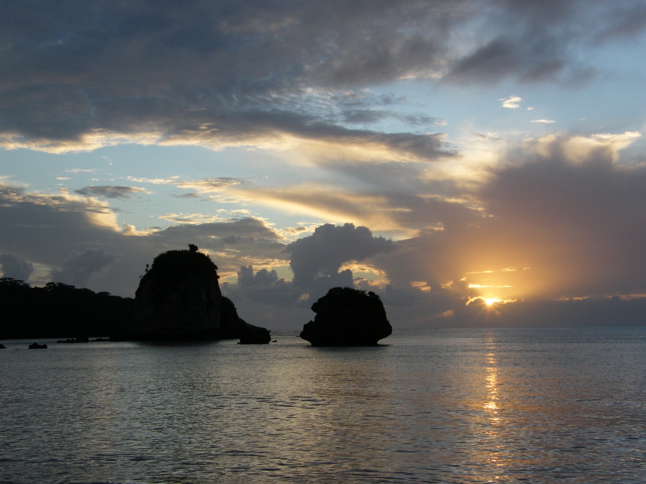 夕日の時間に合わせて浜に出ました。人もそれほど多くなく、美しい夕日を静かに見ることができました。雑木林を隔てて大型のホテルがあったのですが、あまり気にならず夕日を鑑賞できました。