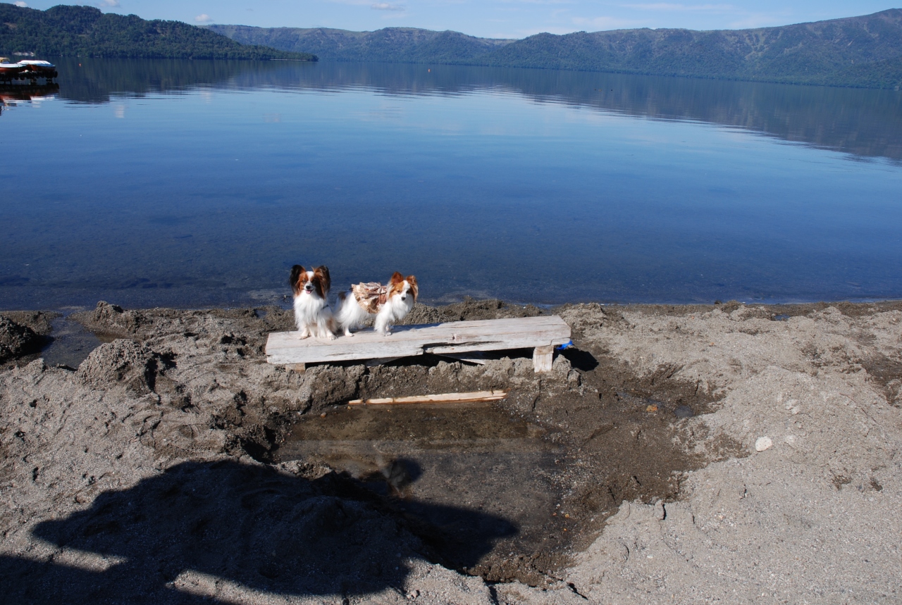 北海道には温泉が多いですが、屈斜路湖沿いの道をドライブしていると特に温泉の地名が目に付きます。湖畔はぐるりと温泉のようです。砂湯は文字通り、湖畔の岸の砂を掘ればそこから湯が沸いてきました。既に他の観光客によって掘られ湯の溜まったた穴がいくつも空いていました。場所によってぬるめの所や熱い所がありました。木枠を組んで足湯も造られています。手軽に行ける場所で自分で掘って楽しめる温泉は珍しいのではないでしょうか。でも全身浴用の穴を掘るのはかなり大変。スコップがあれば別だけど、手で掘るなら手湯くらいかな。