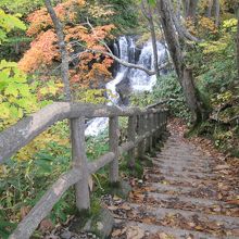 滝へは、駐車場から階段がありますが、下りなくても見えます。